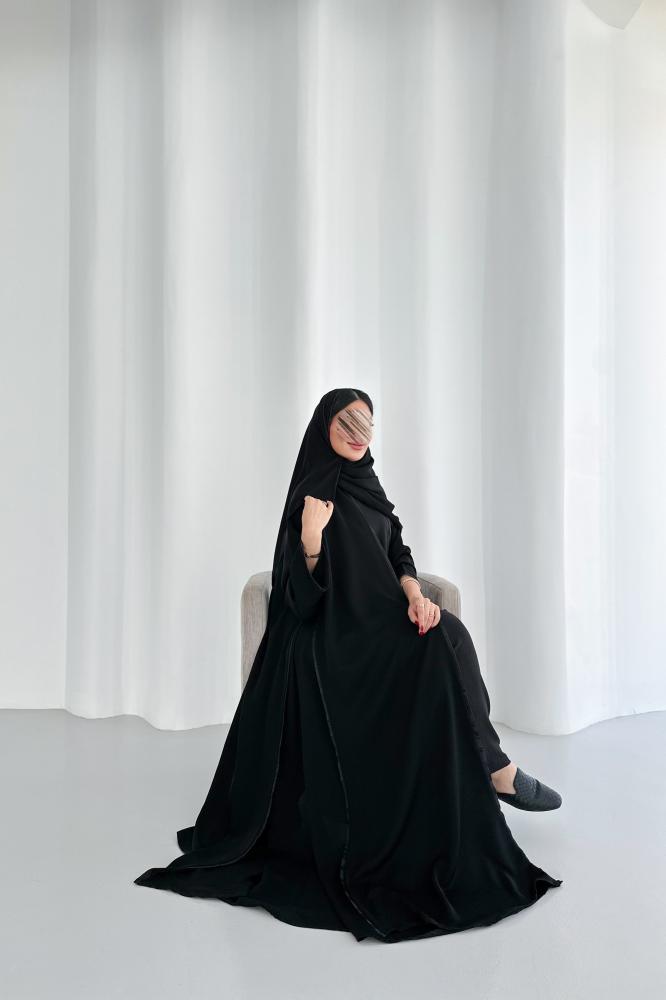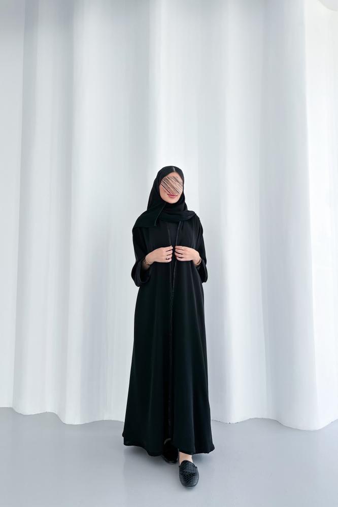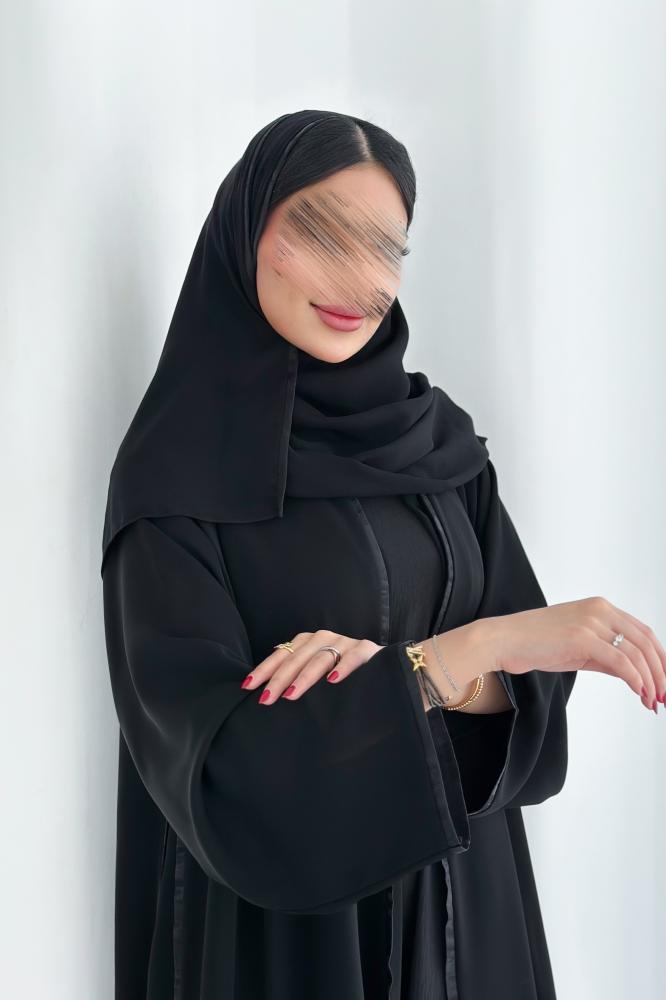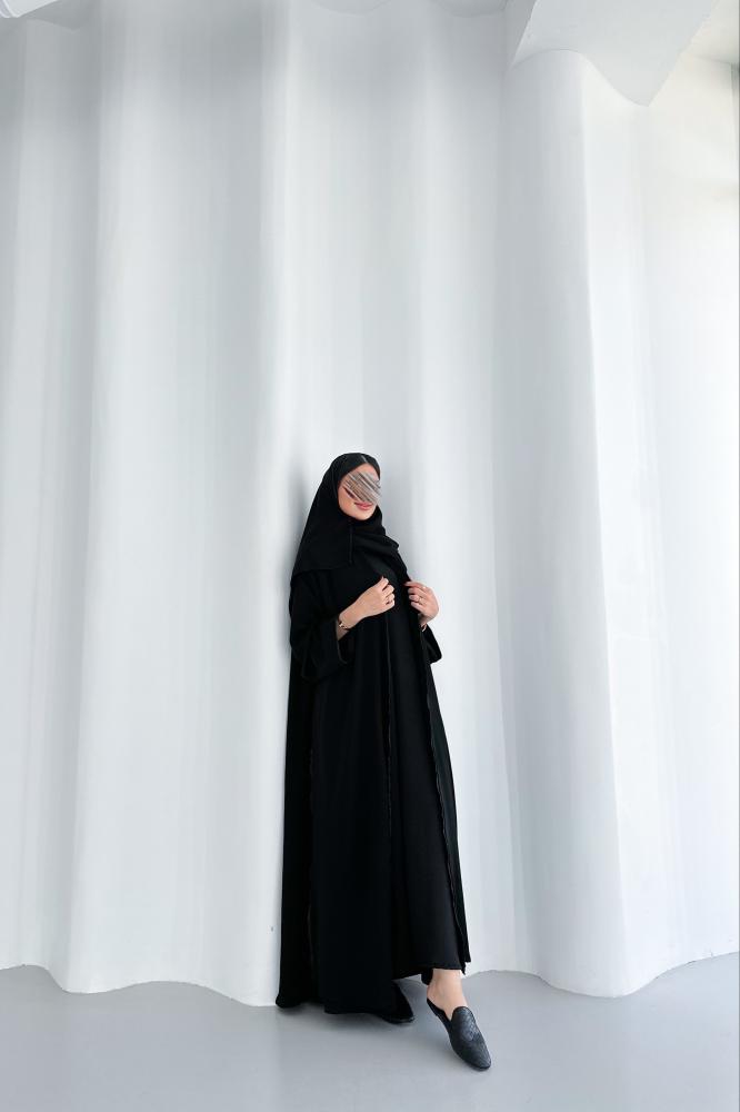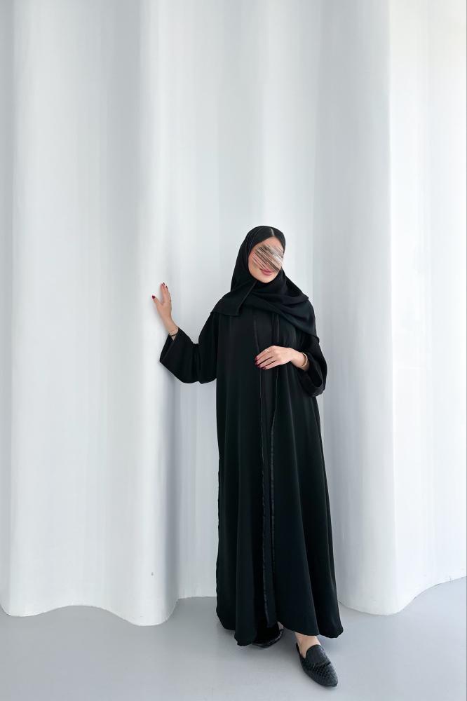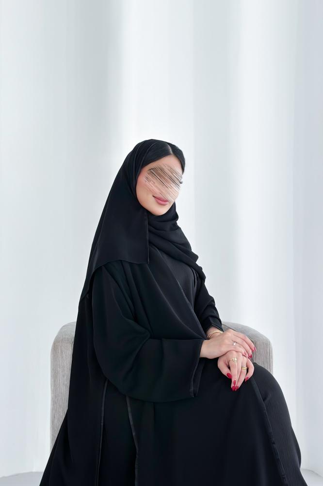 عباية كريب ناعم بكسرات مفتوحة من الجنب مع اضافة جاكار بالأطراف